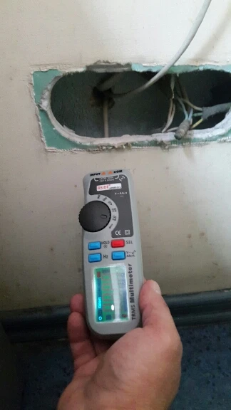 Еще прибор умеет отличить фазовый провод от ноля. Для этого вставляется один щуп, прибор переключается в измерение «live», при попадании щупа на фазу прибор так же издает периодический звук, а светодиод моргает.
