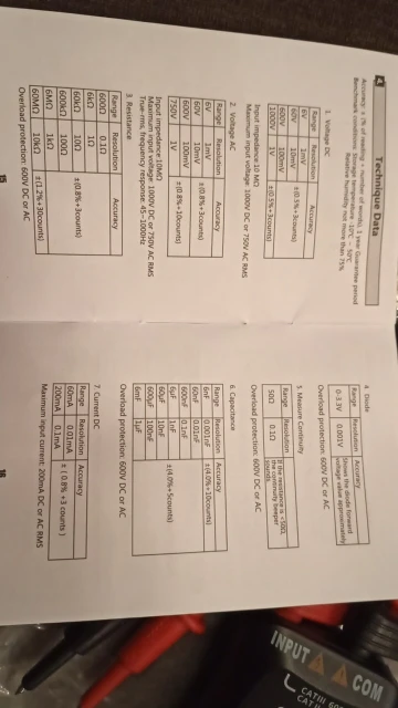 Пределы измерения ёмкости: 6нф ± (4.0% + 10); 60нф/600нф/6 мкФ/60 мкФ/600 мкФ/6мф ± (4.0% + 5)