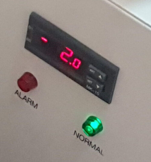 Кстати, если у вас нет термометра в помещении вы можете посмотреть температуру на информационном дисплее чиллера. Для этого просто нажмите на кнопку со стрелкой вниз.