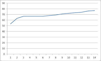 По данным, накопленным в файле в процессе работы программы, можно представить ход эволюции в виде наглядного графика (ось X — номер поколения, ось Y — средняя скорость особи):