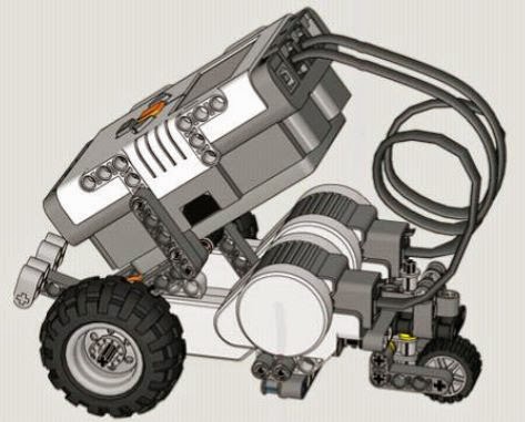 Для придания устойчивости роботу имеет смысл поставить моторы по двум сторонам от NXT. Это несколько расширит корпус тележки