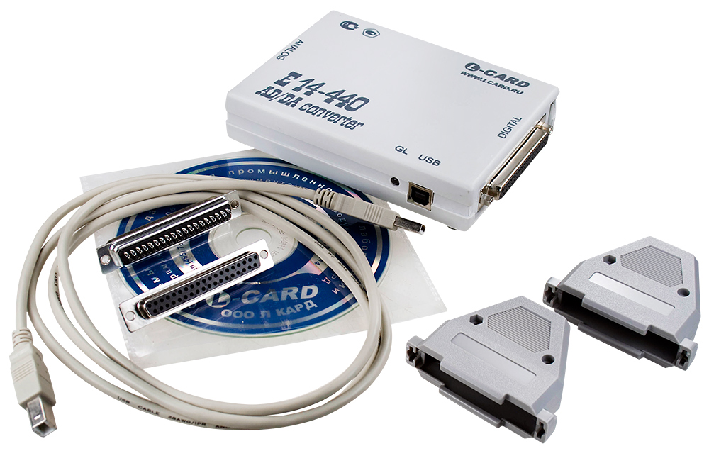E14-440 — предназначен для построения многоканальных измерительных систем ввода, вывода и обработки аналоговой и цифровой информации с наличием USB интерфейса для подключения к ПК.