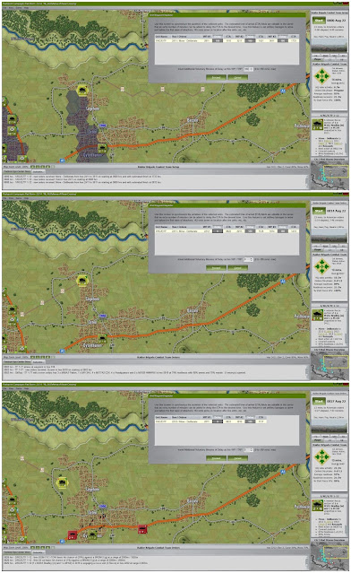 Получив новый приказ войска не сразу начинают его исполнять. Здесь в ступает в действие моделирование задержек связанных с передачами приказов и планированием их исполнения. Этот момент очень хорошо знаком любителям серии Airborne Assault / Command Ops. Есть одно отличие. Если в серии Airborne Assault / Command Ops даже после получения нового приказа войска продолжают какое-то время выполнять старый, но здесь выполнения старого распоряжения мгновенно прекращается. Марширующие войска сразу останавливают и стоят на месте несколько десятков минут перед тем как двинутся в новом направлении. В этом смысле механизм из Command Ops выглядит более правильным.
