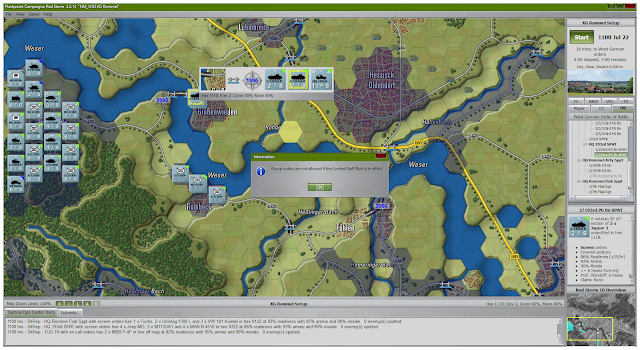 В тот момент когда управление передается очередному игроку, вступает в действие интересное правило, по ограничению числа новых приказов, который этот игрок может отдать в данный момент времени. По умолчанию это правило отключено, и для его активации необходимо снять галочку в настройках перед началом сценария. Идея правила состоит в том, что реальный командир на поле боя физически не может уделит внимание каждому солдату в каждый момент времени, что является нормой для компьютерных варгеймов. И вот тут игроку Flashpoint Campaigns: Red Storm и надо принимать решения, какому моменту следует уделить внимание вашего игровому командира, что лучше, связаться с командиром батальона и передать распоряжения об атаке, или выйти на связь с артиллеристами и вызвать арт. удар по скоплению противника? Количество отдаваемых приказов за один цикл значительно меньше общего числа войск на карте. В итоге при всем желании нет возможности связаться с каждым командиром и поставить ему новую задачу. Приходится принимать решения, какие распоряжения могут подождать, а что требуется сообщить войскам прямо сейчас.