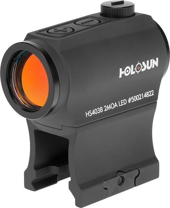 HS403B — компактный коллиматорный прицел с красной точкой от американского бренда Holosun. Благодаря небольшим размерам его легко установить на ружье, пистолет, карабин, пневматическую винтовку или даже арбалет.