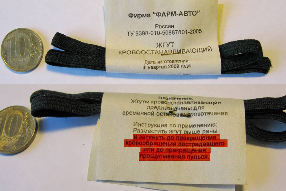 Жгут кровоостанавливающий для остановки артериального кровотечения |