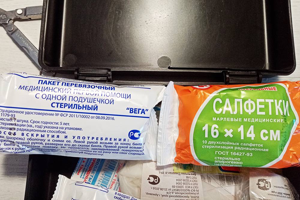 - Взамен удаленных перевязочных средств в аптечку добавлена дополнительная упаковка стерильных салфеток и нестерильные бинты больших размеров.