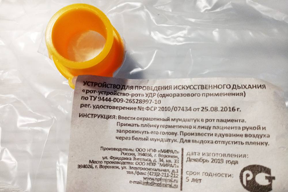 1.3 | Устройство для проведения искусственного дыхания «Рот-Устройство-Рот» | Используйте для выполнения искусственного дыхания при проведении сердечно-легочной реанимации |