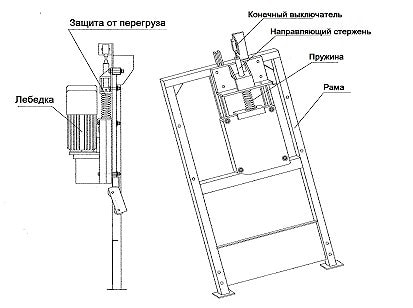 На раме платфомы смонтированы другие элементы и узлы подъемника: лебедки, ловители, защита от перегрузки, электрооборудование, ролики и др.