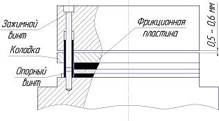 При настройке слегка ослабить три зажимных винта, повернув их против часовой стрелки, и повернуть опорные винты для достижения нужного зазора (зазор уменьшается при повороте винта против часовой стрелки и увеличивается при повороте по часовой стрелке), затем затянуть зажимные винты.