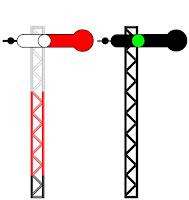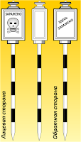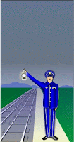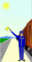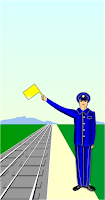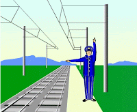 - на однопутных и при движении по неправильному железнодорожному пути на двухпутных участках: днем – прямоугольный щит, окрашенный с обеих сторон в красный цвет, или развернутый красный флаг на шесте; ночью – спереди и сзади красный огонь фонаря, укрепленного на шесте;