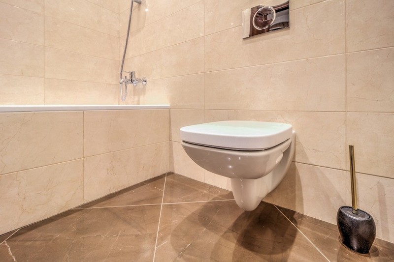 - Простота обслуживания. Отсутствие ножки позволяет легко вымыть пространство под унитазом. Нет отверстия в полу, которое вызывает проблемы с уборкой и могло бы нарушить общий рисунок напольного покрытия.