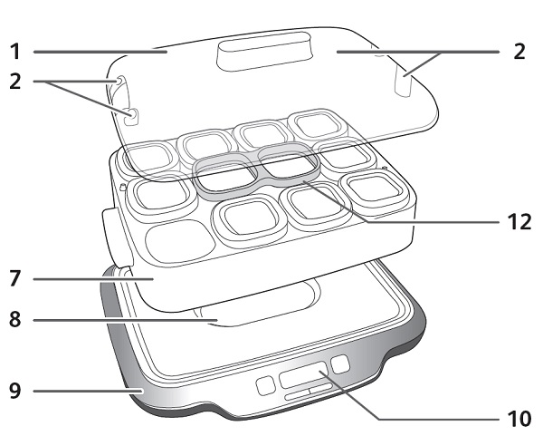 The markers on the lid (from 1 to 12) show the time at which the yoghurt will be ready. Make the graduation coincide with the mark located on the body of the appliance: if it is midday and you select a preparation time of 8 hours, set the graduation to number 8. Then, press the switch to start the preparation process. The light indicator will come on. Once the preparation time has ended, it is up to you to unplug the appliance and store the yoghurts in the refrigerator.