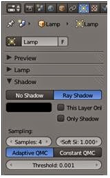 По умолчанию в Блендере отключена опция трассировки лучей (Ray-tracing). Нажмите [F7] для перехода ав меню кнопок и в панельке ‘Render’ активизируйте кнопочку ‘Ray’. Переходим в следующий этап подготовки.