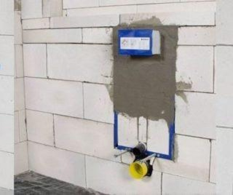 Установку встроенного оборудования ведут с постоянной выверкой горизонтали и вертикали по строительному уровню. При монтаже встроенных бачков с подвесным унитазом особое внимание обращают на надежность крепления. Нагрузки очень высоки, крепления должны выдержать общий вес сантехники и сидящего человека.