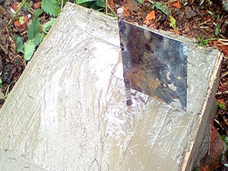 При стандартной установке труба обрезается на 30 см выше уровня земли. Ее торец необходимо закрыть заглушкой. После этого вокруг трубы заливается бетонный куб с геометрическими размерами 1 х 1 х 1 метр. В бетон на высоту 0,5 м монтируется репер с металлической таблицей. На ней электросваркой наносится надпись с указанием номера, владельца, даты и года ликвидации скважины.
