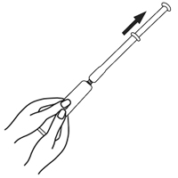 2 Мягко выдавите содержимое тубы до полного заполнения аппликатора. При появлении сопротивления потяните поршень аппликатора чуть-чуть вверх. Аппликатор должен быть полностью заполнен кремом, если нет других предписаний лечащего врача. |