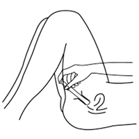 4. Введите аппликатор глубоко во влагалище (насколько возможно) в положении лежа на спине, колени согнуты. Надавливая на поршень, выдавите весь крем из аппликатора. Удалите аппликатор, не касаясь поршня.