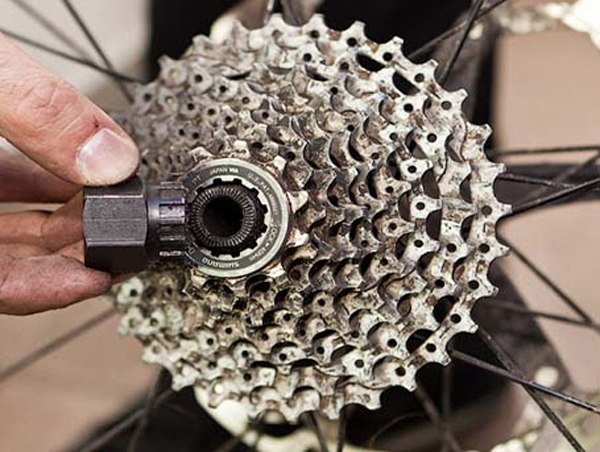 Также в домашних условиях можно почистить и смазать цепь. Чистят цепь с помощью специальной машинки — цепемойки, продающейся в веломагазинах. После чистки цепь обязательно нужно смазать. Смазка тоже продается в веломагазинах. Можно самостоятельно почистить кассету (набор задних звездочек) и систему (набор передних звезд) с помощью специальной щетки.