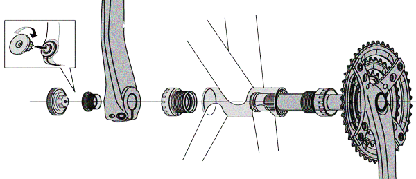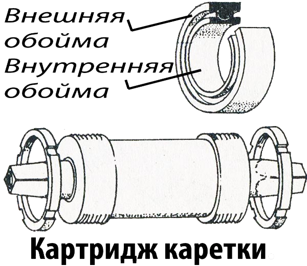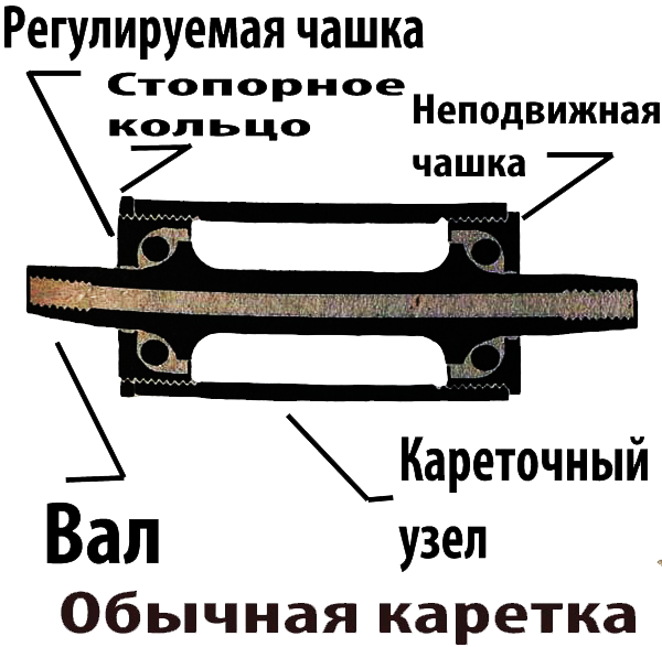Каретки бывают нескольких видов. Рассмотрим на примере стандартной каретки Shimano с валом octalink. Эта каретка картриджная, в случае выхода из строя она заменяется на аналогичную.