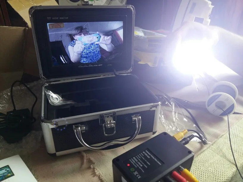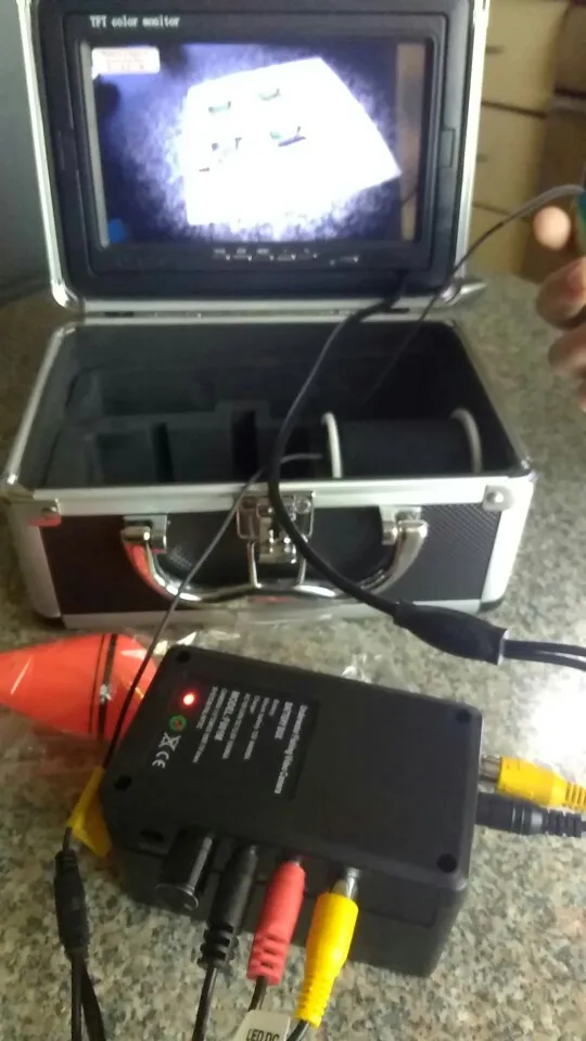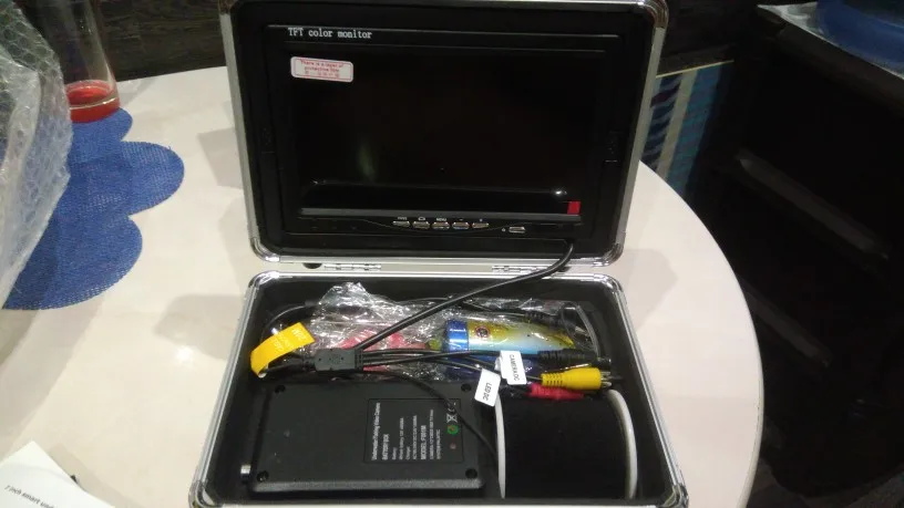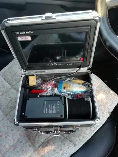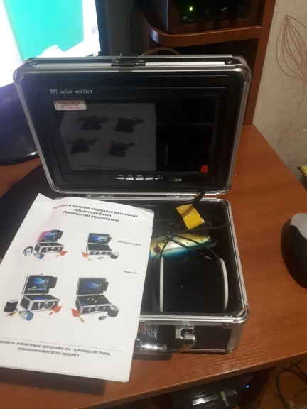 Камеру доставил курьер по адресу за шесть дней в Москве, заказывал с доставкой в РФ. Все работает, комплектация как заявлено, брал с ИК подсветкой. Видимость на водоеме (Яузское водохранилище) около 60-70 см. Рыбу видно. С подсветкой видно планктон в виде снега на экране. На блоке питания нет индикации разряда батареи. На зарядном устройстве есть диод показывающий полную зарядку батареи. Не очень удобно фиксировать камеру в нужном положении на дне водоема, нужна прищепка или фиксатор провода. Экран вынимается из чемодана и очень лёгкий, качество изображения вполне сносно. Есть колечки для фиксации провода к камере, очень удобно. Внутренние перегородки сделаны не удачно, если перевернуть их зеркально, клеевой стороной вверх, то блок питания не нужно будет вынимать при подключении экрана и камеры и регулировать ИК подсветку будет удобнее.