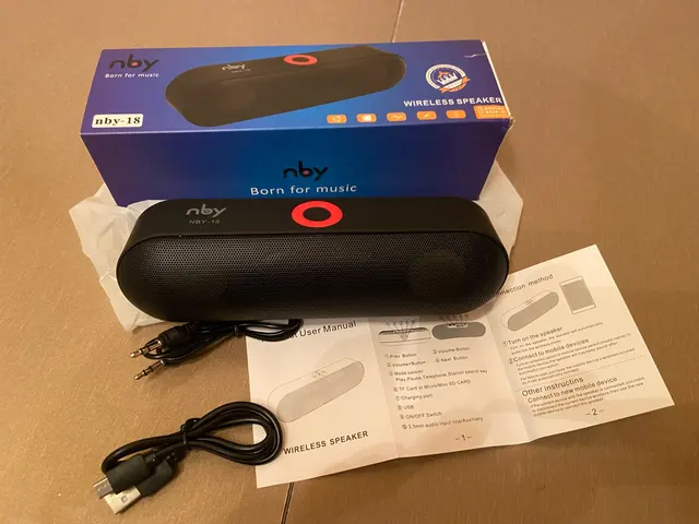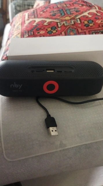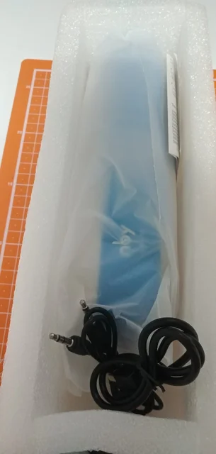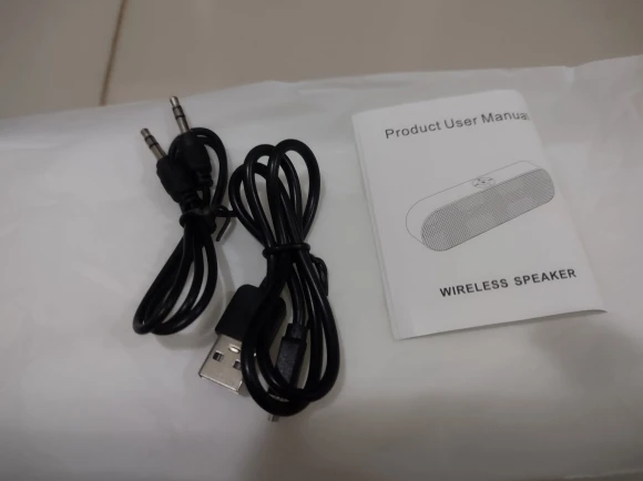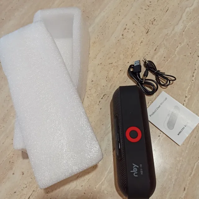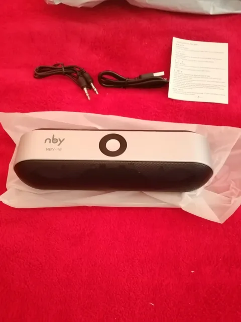 Итак, первые впечатления от динамика NBY-18. Упаковка так себе. Полиэтиленовый пакет без привычных пупырышек или надутого мешка. Сама колонка без коробки, с ней инструкция, кабель для зарядки.
