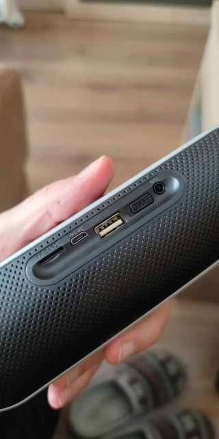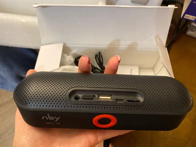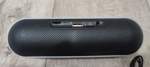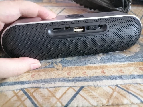 Хорошее качество звука для такой маленькой колонки. Все пришло в хорошем состоянии, но упаковка не очень. Колонка имеет AUX, радио, Bluetooth.