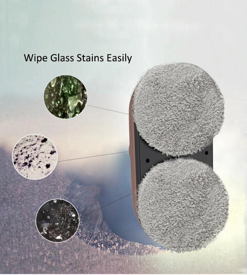 - Очистка салфеткой из микрофибры. Принцип действия мойщиков этого типа самый простой. Агрегат просто ползет по стеклу, плотно прижимаясь к нему рабочей частью, и вытирает загрязнения.