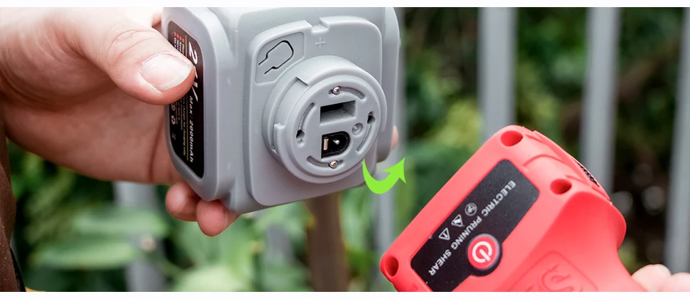 Регулируемая режущая головка, нажмите и удерживайте триггер в течение 5 секунд, остановите до звука «ding», вы можете изменить его от 28 мм до 19 мм/32 мм до 23 мм. Подходит для ветвей различной толщины. Этот Электрический секатор используется для всех видов садов, парков, ферм. Для резки кустов, цветочных ветвей, винограда, вишневых деревьев, яблони и т. Д.