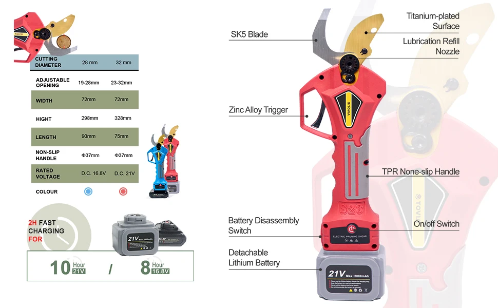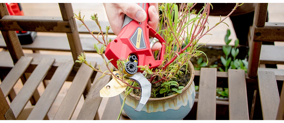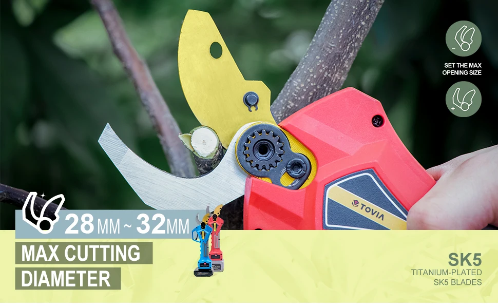 T TOVIA электрические секаторы легкие и весят всего 1,03 кг/1,14 кг. Этот секатор также является легким для женщин, чтобы использовать его. Его можно положить в карман При отделке. Он может работать как грейпферный резак, секатор деревьев, садовые ножницы и т. д. ПП + TPR материал и компактный дизайн делают любую обрезку легкой, удобной и свободной от нагрузки.