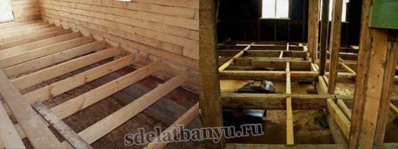 - Его несущей основой являются лаги, устанавливаемые на фундамент или врезаемые в цокольный венец сруба.