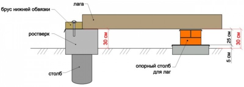 - Для устранения зазора между балками и грунтом устанавливаются опорные столбы или площадки.