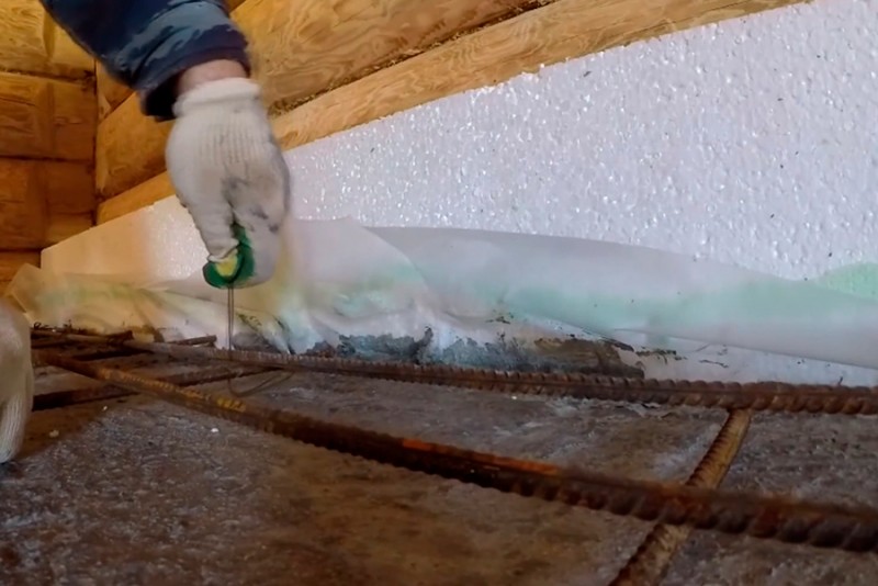- Залить бетонную подготовку толщиной 50 мм, предварительно уложив на керамзит сетку из тонкой арматуры.