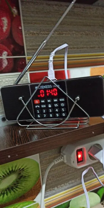 Отличный приемник. Есть блютус. звучание чистое. Он тонкий, поэтому легко падает. Я его вставляю в салфетницу и он стоит уверенно. Я доволен аппаратом.