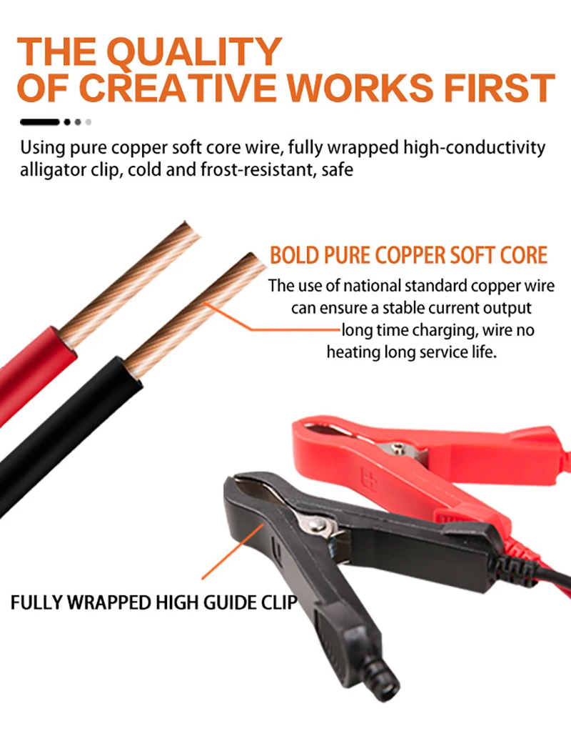 Обнаружение температуры разный заряд зимой и летом: микрокомпьютер автоматически распознает температуру окружающей среды и дает вам подходящее напряжение зарядки аккумулятора в зависимости от сезона. Полностью заряжается зимой, перезаряжается летом, продлевая срок службы батареи