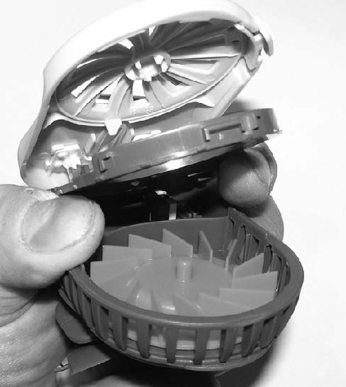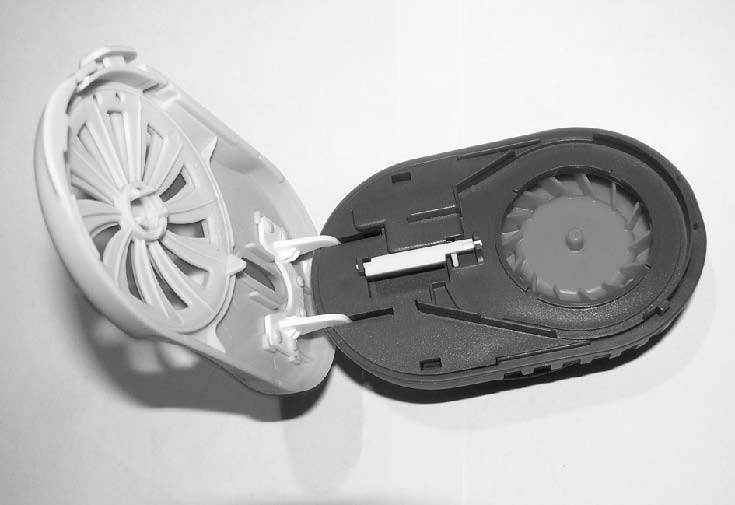 В устройстве имеются включатель питания и электромотор (электродвигатель с крыльчаткой). Сам электродвигатель достоин отдельного описания, поскольку может с успехом применяться и в других конструкциях, включая радиолюбительские самоделки. При номинальном напряжении питания 3,3 В электродвигатель автономной фэн-системы SCJ-IC-163 потребляет ток 56 мА.