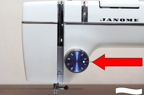 Переходим к регулятору натяжения, представляющего собой небольшое колесо с набором цифр. Благодаря этому устройству вы сможете контролировать силу натяжения нитки в процессе работы. Если натяжение сильное, то игла будет слегка отклоняться в сторону. Если натяжение недостаточное, то нитка будет собираться и путаться с оборотной стороны ткани, подвергающейся обработке.