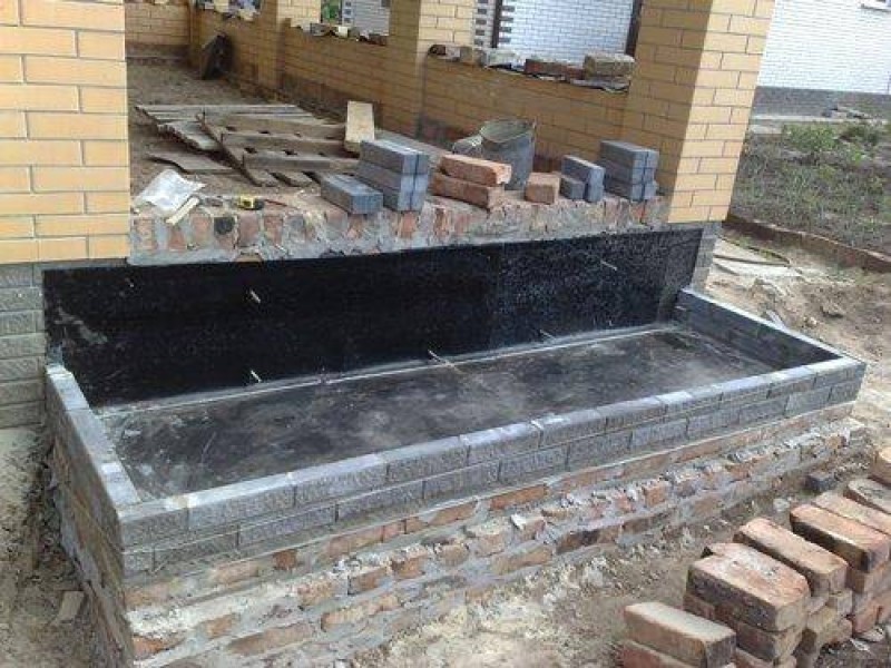 Ошибка №3: отсутствие гидроизоляции между кладкой и фундаментом. Эта ошибка характерна не только для крыльца с клумбой, но и без нее.