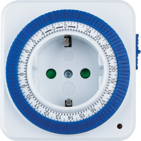 Наибольшим спросом пользуются розетки с механическими суточными программами. Поскольку для работы электродвигателя часового механизма нужна электроэнергия, их иногда называют электромеханическими таймерами. В качестве резервного питания используются аккумуляторы. Программа управления нагрузкой создаётся механически за счёт набора сегментов с 15-минутными интервалами.