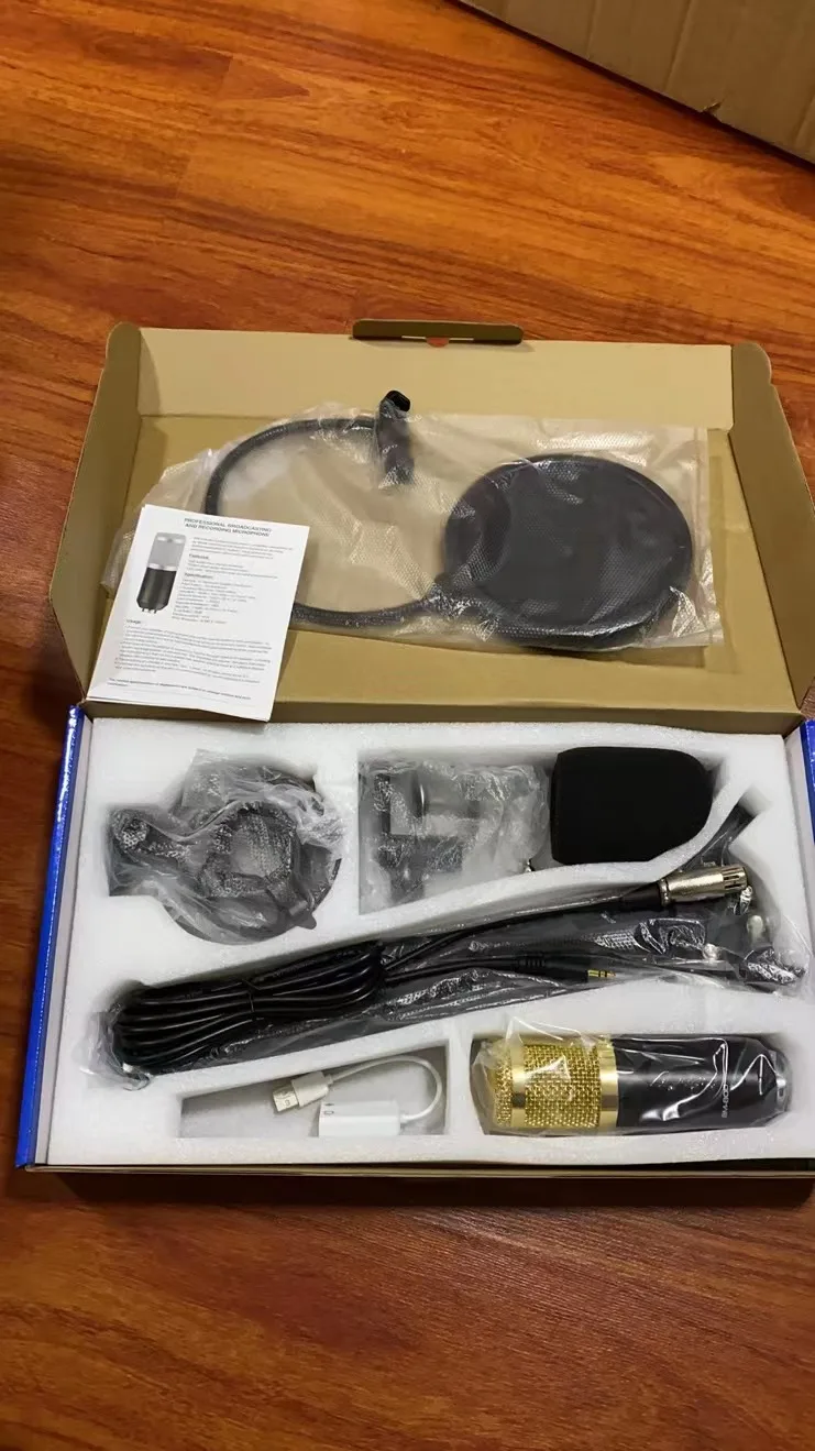 V10 sound card, cable, manual; BM800 microphone, microphone cable, manual; Cantilever bracket; Large blowout prevention net ; Plastic shock frame; Sponge ball |